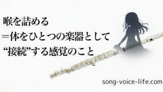 体も開く喉の開け方(トランペットの管のように細くしかも中は空いている「中空」)についてはこちらをご参考ください。
